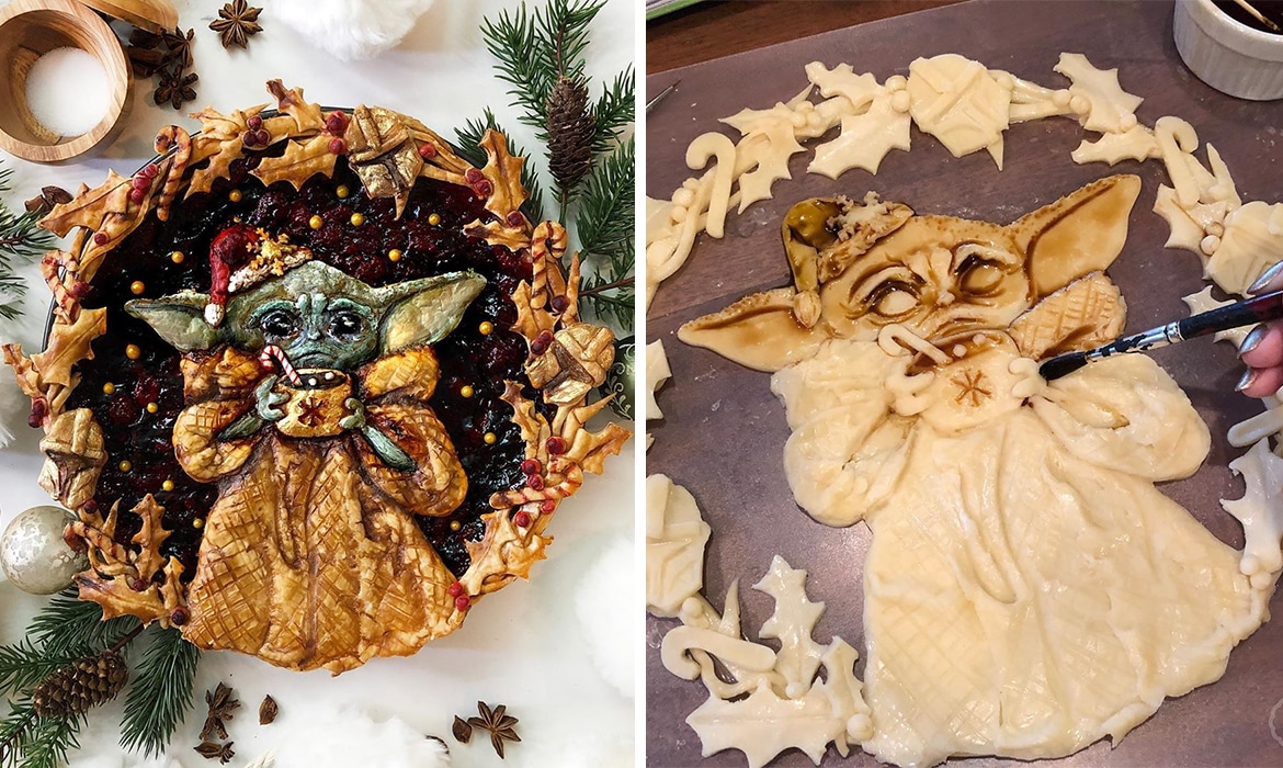 Even if you haven’t watching Disney+’s Star Wars live-action series, The Mandalorian, chances are you’ve seen Baby Yoda (aka The Child) taking over the Internet lately. The adorable little character is the subject of many memes, but he’s also recently inspired a delectable pie crust design by Jessica Leigh Clark-Bojin (of Pies Are Awesome).