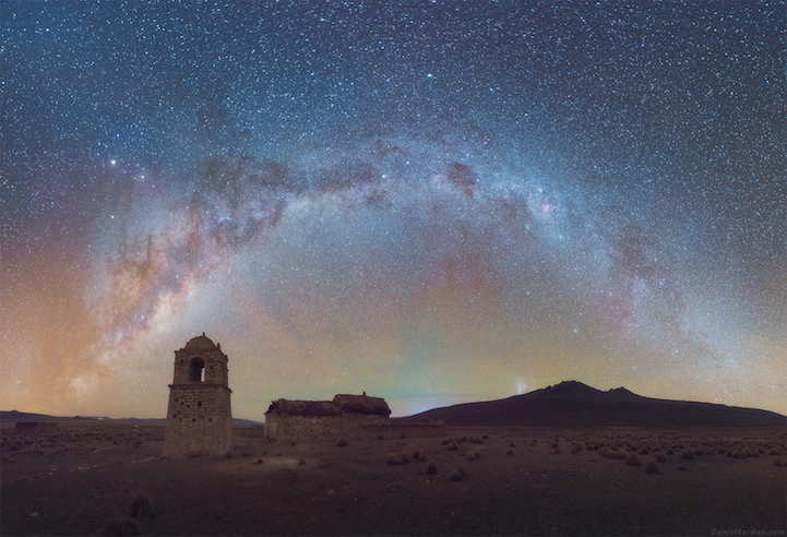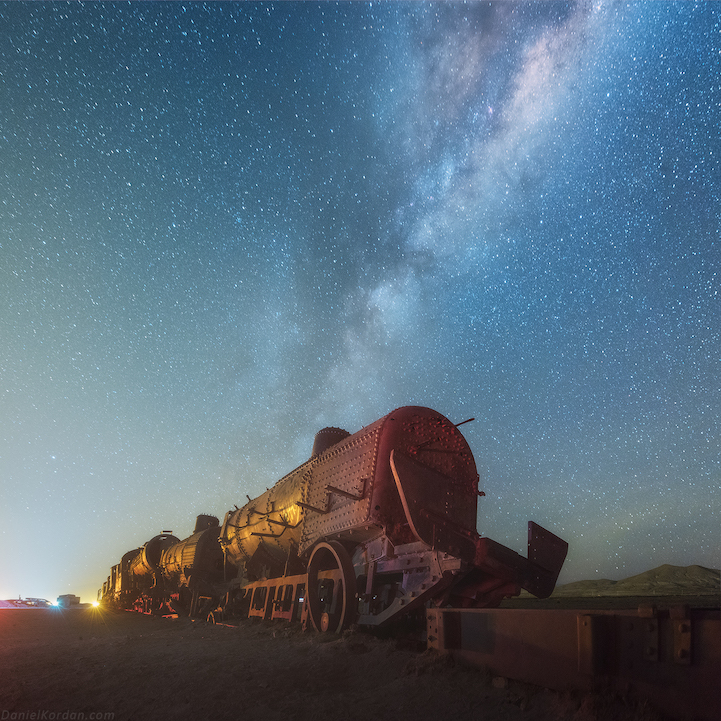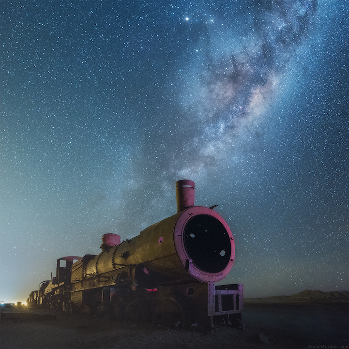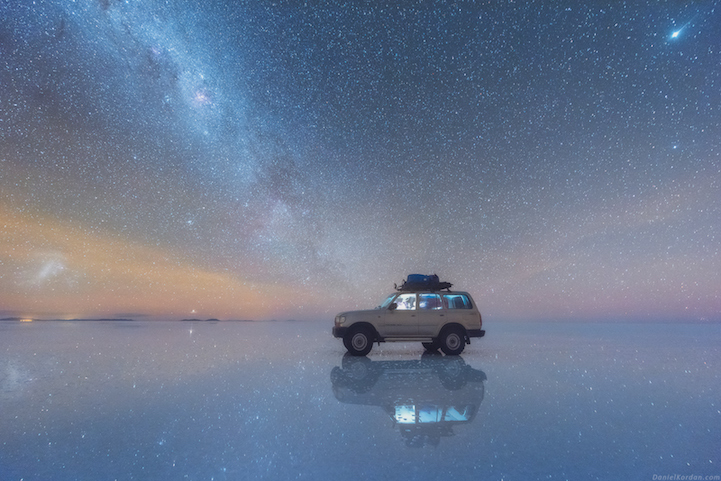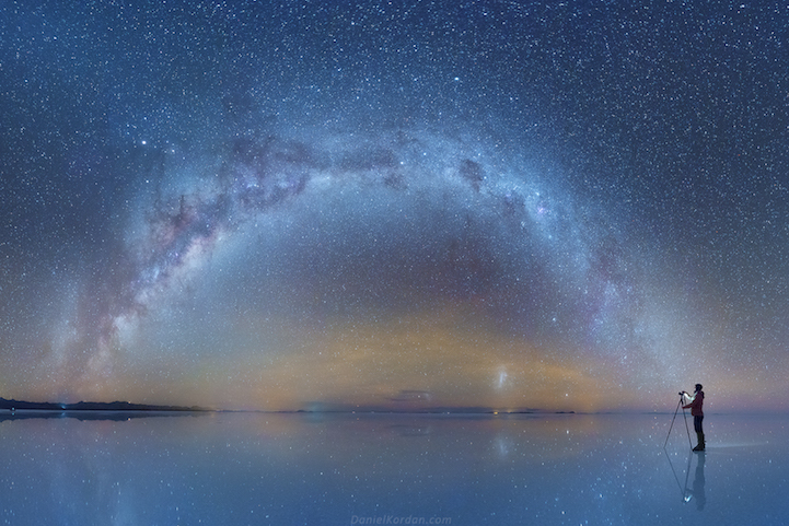 Salt flats around the globe are known for their intoxicating visuals and otherworldly feel. Russian photographer Daniel Kordan recently made the trek to Salar de Uyuni in Bolivia—the world’s largest salt flat—and shot the Milky Way as it reflected off of the mineral-covered plain. “There are not so many places in the world where you can enjoy absolute dark sky,” Kordan tells us in an email. “Light pollution is in the cities and even small villages.” The results are a stunning fusion of the Earth and cosmos—at times, it’s hard to tell where the two begin and end.