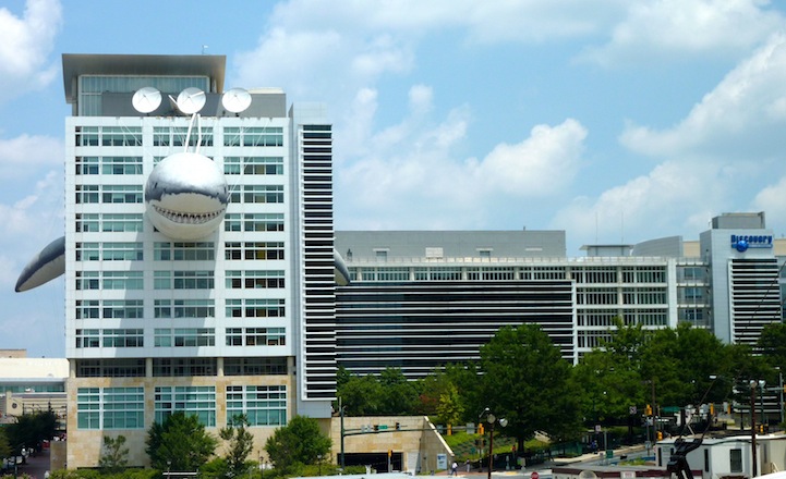 In honor of Shark Week 2010, which starts August 1, the Discovery Channel transformed its main office building in downtown Silver Spring, Maryland into a giant shark.