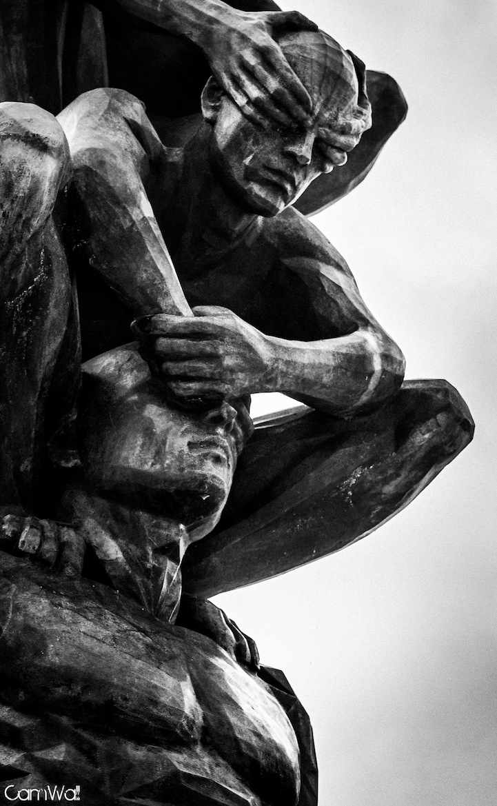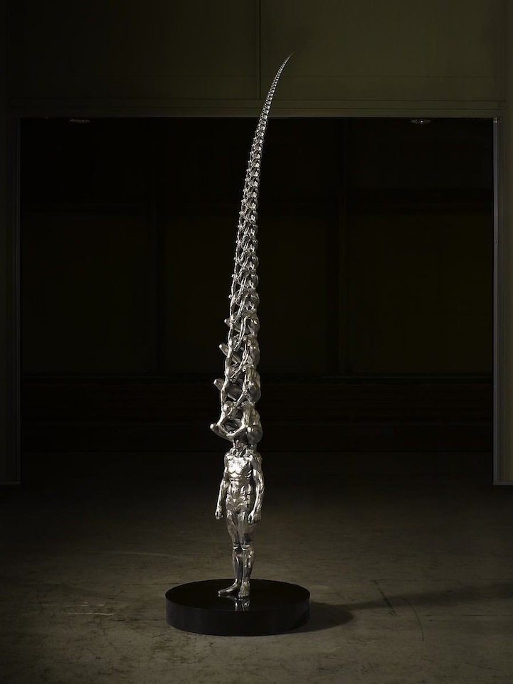 Karma is an intriguing sculptural installation by Korean artist Do Ho Suh that presents countless men sitting atop one another while shielding each other's eyes. Like his Cause & Effect piece, which features a spectacular tornado of figurines, Karma presents figurative sculptures ascending into the sky like a human ladder. However, in addition to being perched on each other's shoulders, they are successively blinding one another which leads one to wonder: Why?