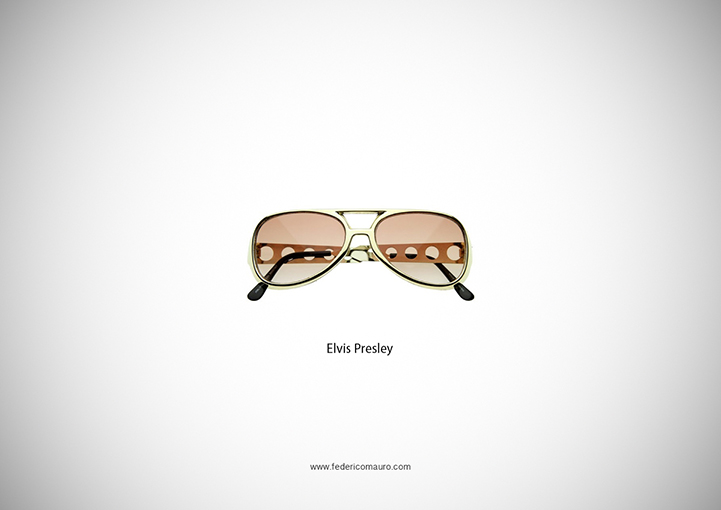 The minimalist artwork features basic pairs of glasses and sunglasses worn by many stars across the decades, including Elton John, Elvis Presley, The Blues Brothers, Sofia Loren, and Malcolm X. Even on a plain background with no owner in site, viewers will find themselves quickly identifying each celebrity based solely on the iconic eyewear.