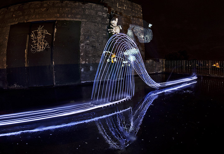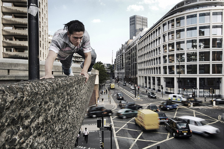 You take some amazing action shots. What's the hardest part about it? Thanks for the compliment. The toughest physical aspects of making a good shot are: location; angle; timing and light. Sounds obvious doesn't it? Like landscape photography light and shadows can play an important role in making an image ‘pop'. However, where these factors are missing (which in Britain can be frequently) I must call on other factors to help deliver what I want. On dull days, shapes, drama and composition play an even more important role in the image. As with the five senses, when one of them weakens another becomes increasingly heightened to compensate. I've long been driven by the desire to show the movement of flow of parkour and freeunning (there is a difference) in a less conventional way. Consequently I sourced some LED lights which I attached (sometimes awkwardly) to my subjects and shot them using long exposures to exploit the essence of the move, literally painting where they started and finished. This has its challenges but has yielded some exciting results. Of course, being a perfectionist, I feel I have yet to produce my best work using this technique and my biggest enemy has been time. I achieved some satisfying results when recently shooting in france and London with freerunning pioneer, Sbastien Foucan [see link: http://bit.ly/gsdmt0] but I need to concentrate on this to get what I want out of it. Of course, perhaps more important than locations is finding the right subject who who understands what I'm trying to achieve. Daniel Ilabaca is a prime example of a traceur with the creative understanding to help me achieve my goals. There are others too, including Ben ‘Jenx' Jenkin, Tim ‘Livewire' Shieff and US parkour/skating crossover athlete, William Spencer. The latter is a remarkable person – utterly fearless and up for almost any challenge. The short time I spent shooting with him left me yearning for much more. His abilities are extraordinary. I have to mention that a nicer bunch of guys it is difficult to meet – they're hilarious and just superb subjects, always willing to try something new or challenging.