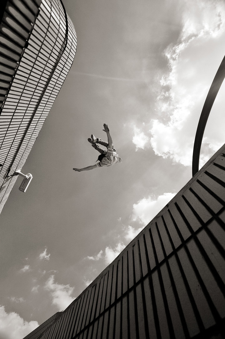 How often do people get hurt? Like any activity that requires contact with hard or rough surfaces, people do get injured. It's inevitable. Some have indeed died through misadventure and, perhaps, a false degree of confidence that their skills can make them invincible. It all boils down to self-assessment, practice and being sensible with any risks. All ‘professional' traceurs train relentlessly in gyms and on the ground before venturing upwards and into uncompromising situations. They don't want to die or get injured. Like sports people, for them an injury means time-out from the activity they love and thrive on, so it pays to stay safe. Of course, taking risks is part of the challenge too and brings inner strength, so a balance has to be struck.
