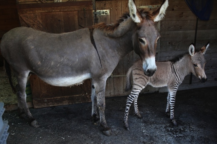 Though it is often a successful pregnancy that births a healthy zonkey baby, zebra and donkey matings are few and far between. As the story goes for Ippo's parents, they met at an animal reserve in Florence when one day Martin the zebra jumped the fence and crossed over to the endangered donkey of Amiata area and mated with Giada the donkey. Twelve months later, Giada gave birth to the adorable Ippo!