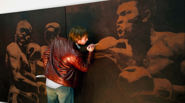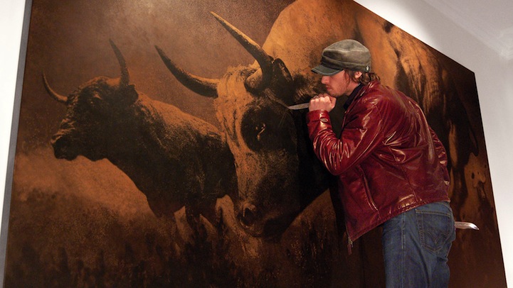 Artist Mark Evans produces remarkably realistic murals of varying subjects by carving into enormous pieces of leather. The Welsh artist's large-scale “paintings” are each meticulously hand-etched with his collection of knives, which happens to include anything from a pocket knife given to him by his grandfather at the age of 7 to an Egyptian Neolithic flint knife (approximated to be from around 5000 BC). Evans is admittedly an artist who is not gifted at painting with brushes, but rather a skilled knife wielder with an artistic vision.