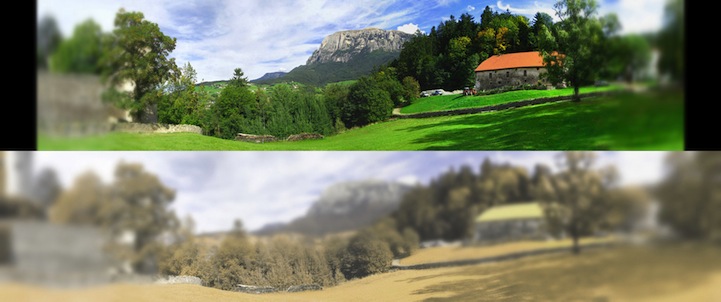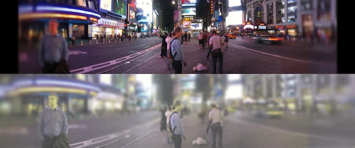 Artist and researcher Nickolay Lamm created this fascinating series that compares the differences between how humans and cats see the world. Each comparison includes one scene appearing in two different ways. The top image shows a panorama of crisp and colorful human vision while the bottom image shows a much more washed out, blurry cat perspective.